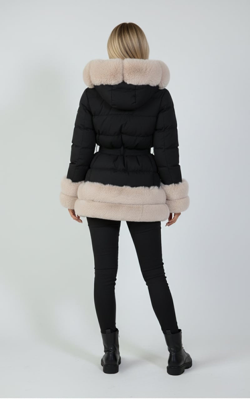 Doudoune courte matelassée avec fausse Fourrure